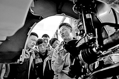9月8日,在青海省果洛藏族自治州職業技術學校,汽車運用與維修專業學生在實訓課程上學習。 新華社發