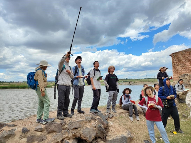 大同思政實踐團成員在桑干河岸觀察地質地貌。