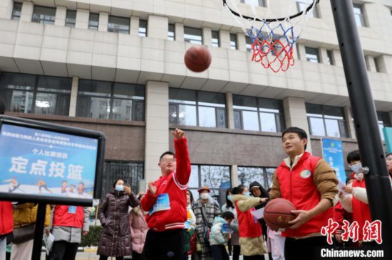 18日,伴隨著激情昂揚的《運動員進行曲》,來自陜西省多個地市的48名智力殘疾兒童齊聚西安,化身運動健兒追逐體育夢想,參與陜西省智力殘疾人及親友協會殘健融合冬季趣味運動會。