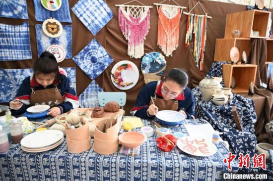 內蒙古呼和浩特市,平面設計專業學生手繪紋樣。中新網記者 劉文華 攝