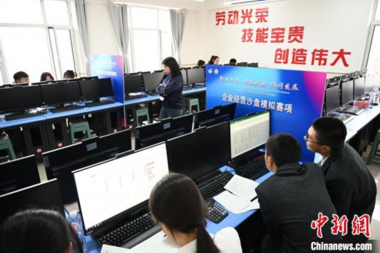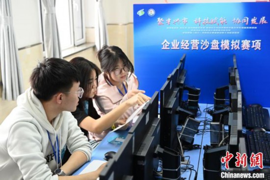 內蒙古呼和浩特市,學生參加企業經營沙盤模擬比賽。中新網記者 劉文華 攝