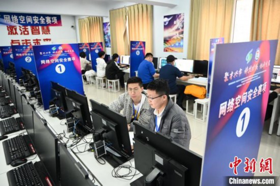 內蒙古呼和浩特市,學生和教職工參加網絡空間安全比賽。中新網記者 劉文華 攝