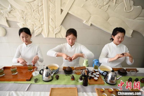 內蒙古呼和浩特市,高星級飯店運營管理專業學生展示茶藝。中新網記者 劉文華 攝