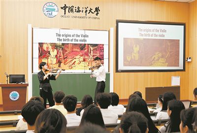 今年以來,中國海洋大學以建校百年為契機,積極探索美育教學社會實踐改革,倡導“讓美育走出課堂”,教演互促經常性開展校外公益演出。圖為中國海洋大學藝術系學生在美育通識課上學習。