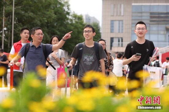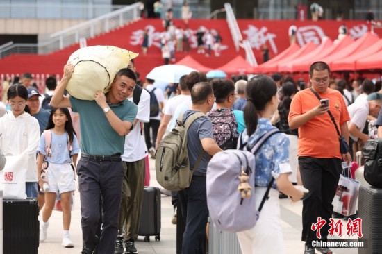 8月19日,北京大學迎來2024級新生報到。圖為學生帶著家長一起報到。