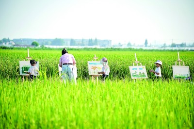 近日,全國多地迎來2024年秋季學期開學。圖為9月2日,在四川省眉山市彭山區觀音街道興崇社區千畝糧油基地,學院路幼兒園的小朋友在進行田間寫生。新華社發