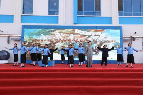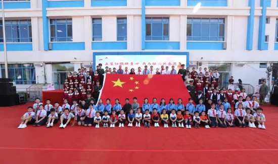 開學典禮 上地實驗小學迎來一面特殊的國旗