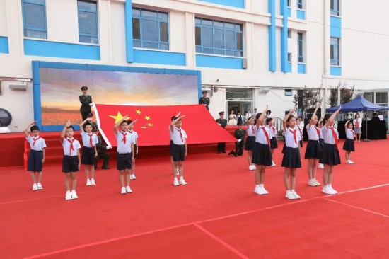 開學前不久,上地實驗小學得到天安門管委會的批復,同意把2023年10月13日建隊日這一天在天安門廣場升起的國旗授予學校保存。在開學典禮上,解放軍戰士擎旗入場,莊嚴神圣,少先隊員代表伴著這面國旗,熱情獻詞,表達各自的奮斗之心和報國之情。