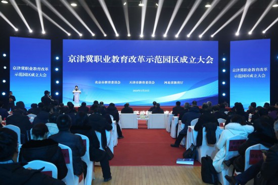 2024年2月21日,京津冀職業教育改革示范園區在北京經濟管理職業學院固安校區正式成立。園區由北京市教育委員會、天津市教育委員會、河北省教育廳共同成立。三地教育行政部門按照“改革先行、聚合創新、協同發展”的理念,合作構建央地互動、區域聯動協同平臺,聚合三地優質產教資源要素,打造京津冀產教融合共同體,推進教育、科技、人才“三位一體”融合發展,以教育協同創新推動京津冀協同發展戰略邁向更高水平,培養更多高素質技術技能人才、能工巧匠、大國工匠。