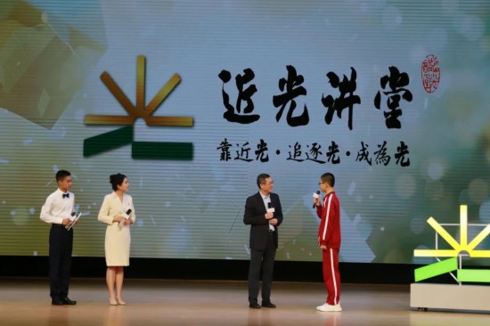 平谷中學學生鄭時宇在“見字如面:大咖有約”環節與袁亞湘交流互動,就古人和現代機器求解圓周率的方法有何改進的問題進行請教。