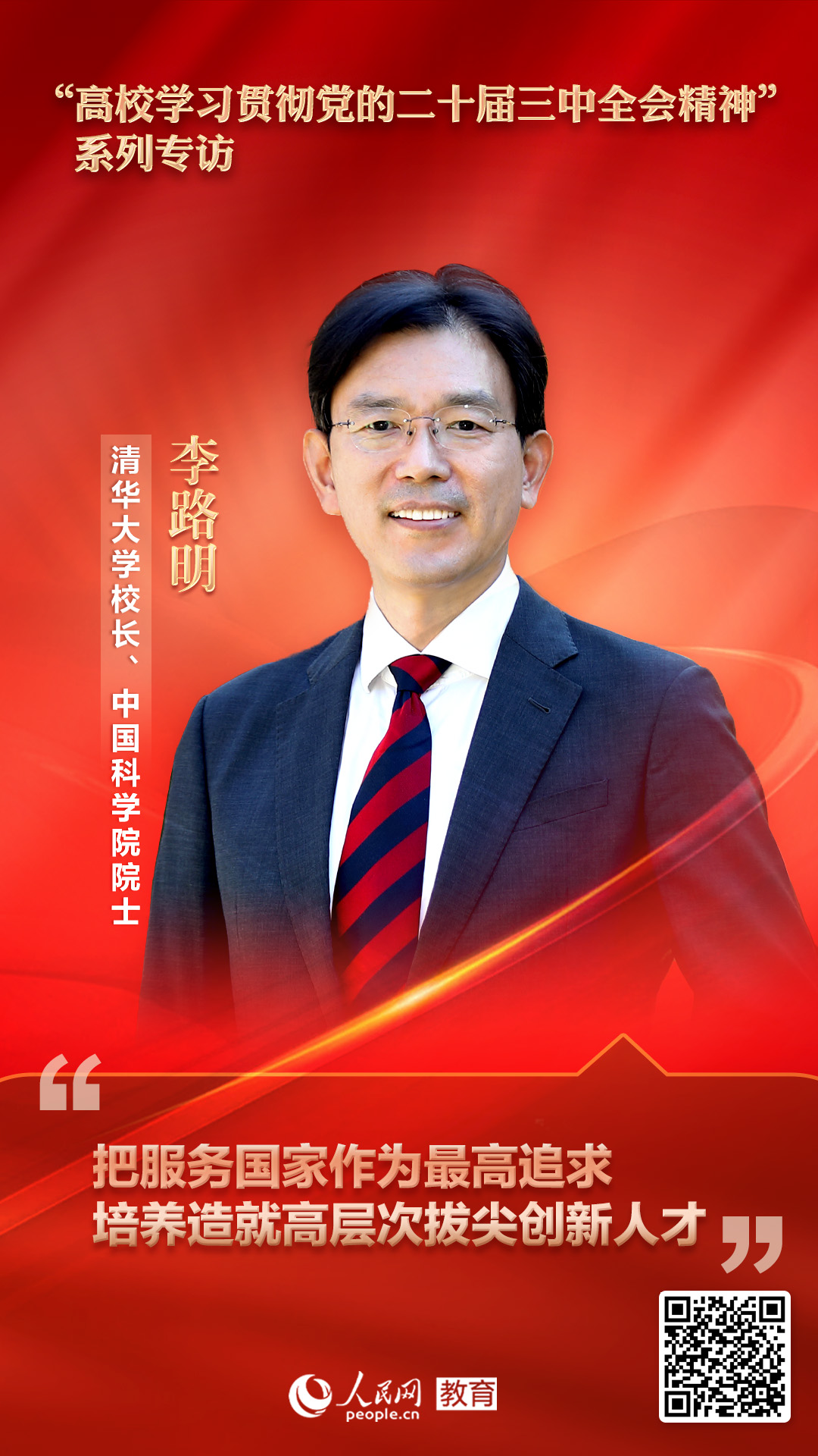 “清華大學將深入貫徹落實黨的二十屆三中全會精神和全國教育大會精神,在深化改革創新中激發活力,推動中國特色世界一流大學高質量發展,努力在服務支撐教育強國、科技強國、人才強國建設中走在前、作表率?!苯?,清華大學校長、中國科學院院士李路明在接受人民網專訪時表示。