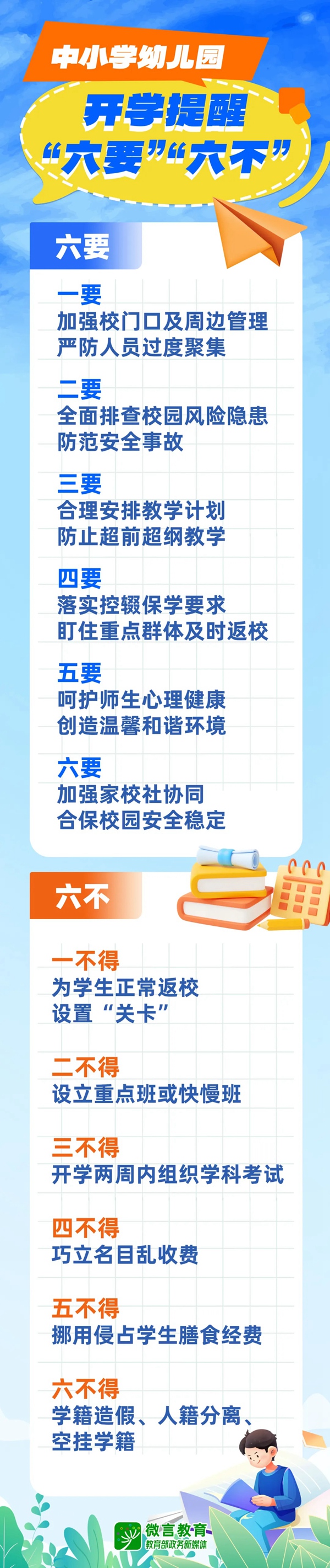 一圖看懂!中小學幼兒園開學提醒“六要”“六不”