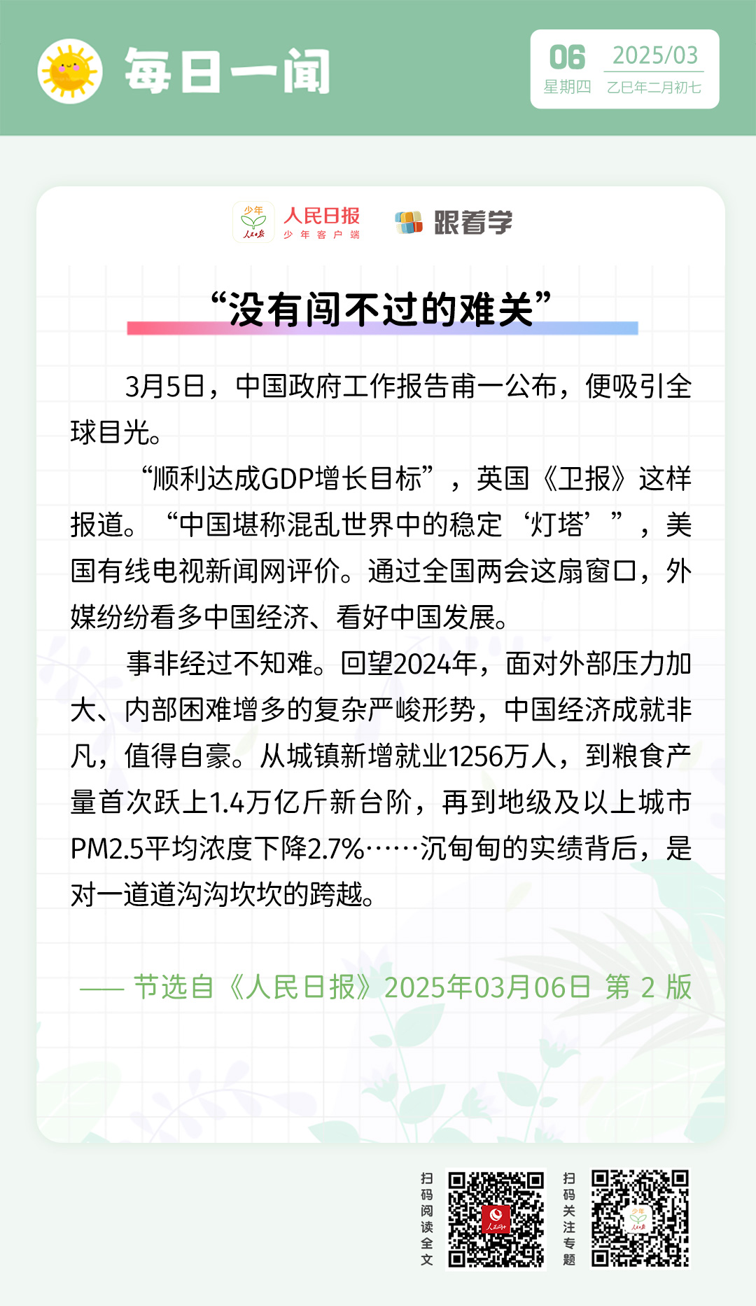 每日一聞丨“沒有闖不過的難關”