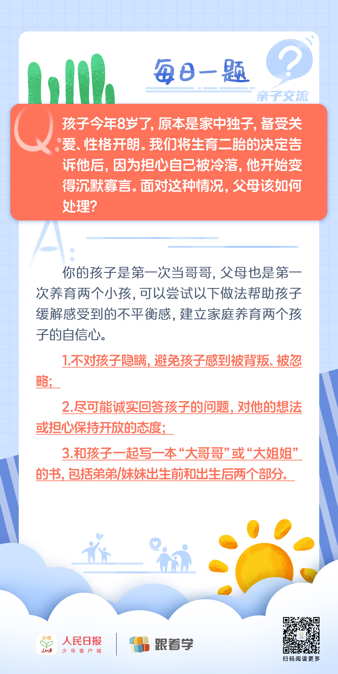每日一題丨父母如何跟孩子表達想要二胎的決定?