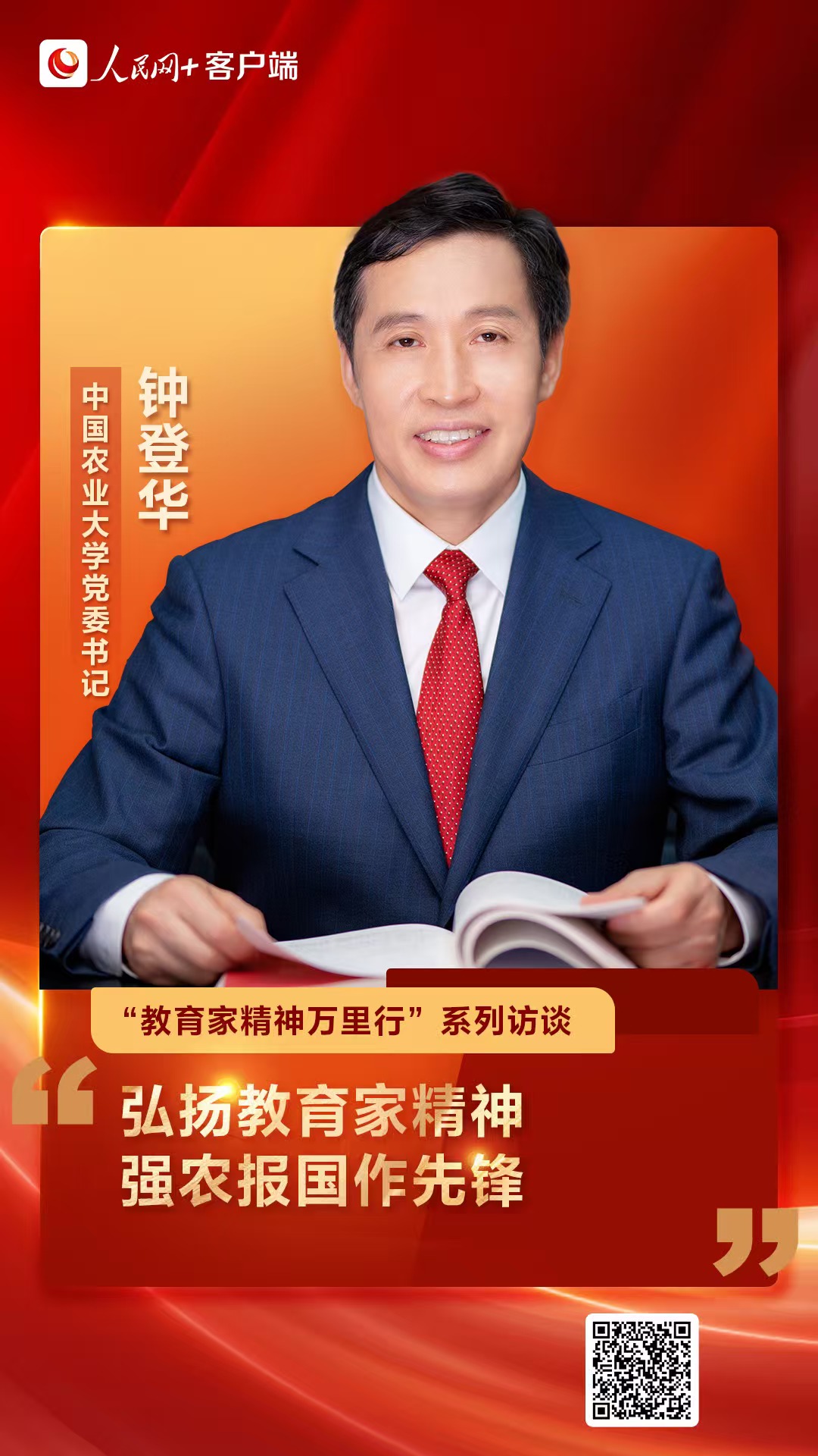 “新時代新征程,中國農業大學深入學習貫徹習近平總書記重要回信精神,堅持以教育家精神鑄魂強師,全方位引領和激勵廣大教師爭做解民生的先鋒、治學問的先鋒、育英才的先鋒,凝聚起‘強國先強農、農大作先鋒’的奮進力量?!苯?,中國農業大學黨委書記鐘登華在接受人民網專訪時表示。