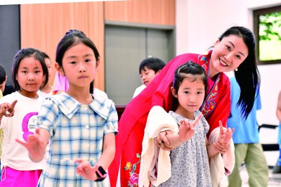 為豐富暑假兒童文化生活,山東省濱州市博興縣利用社區睦鄰中心、新時代文明實踐中心(站)等場所,招募返鄉大學生、文化志愿者,打造“濱濱學堂”,開展形式多樣的活動,讓孩子們度過一個歡樂、充實的暑假。圖為7月23日,博興縣戲劇團的孫娟娟在教孩子們戲劇表演。 新華社記者 郭緒雷攝