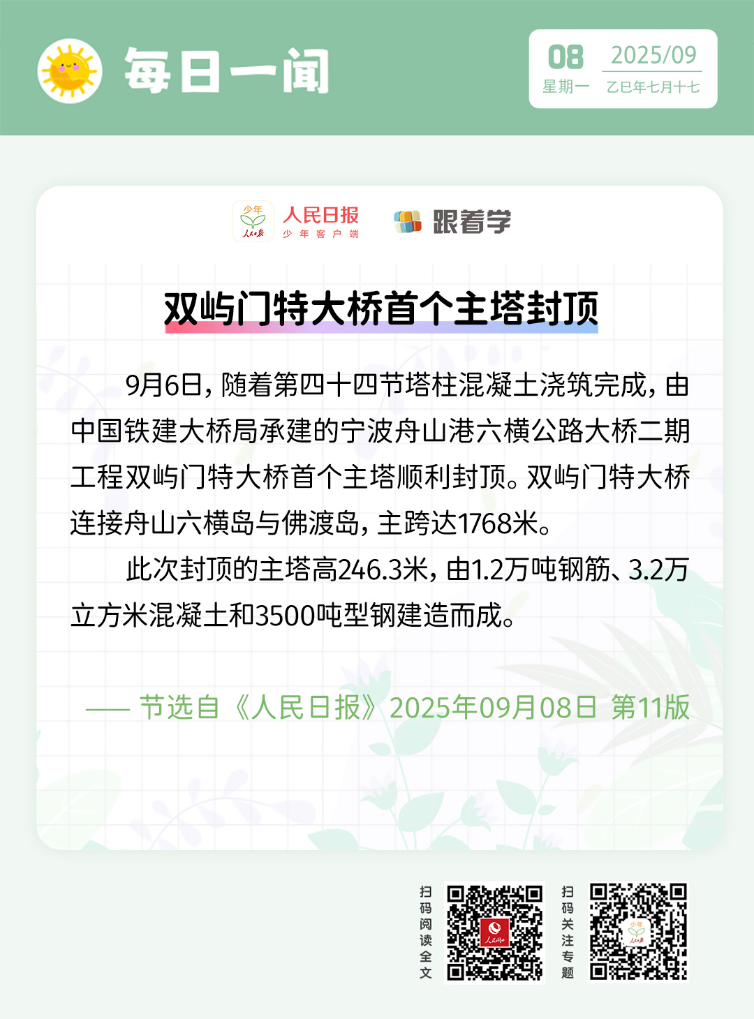 每日一聞丨雙嶼門特大橋首個主塔封頂