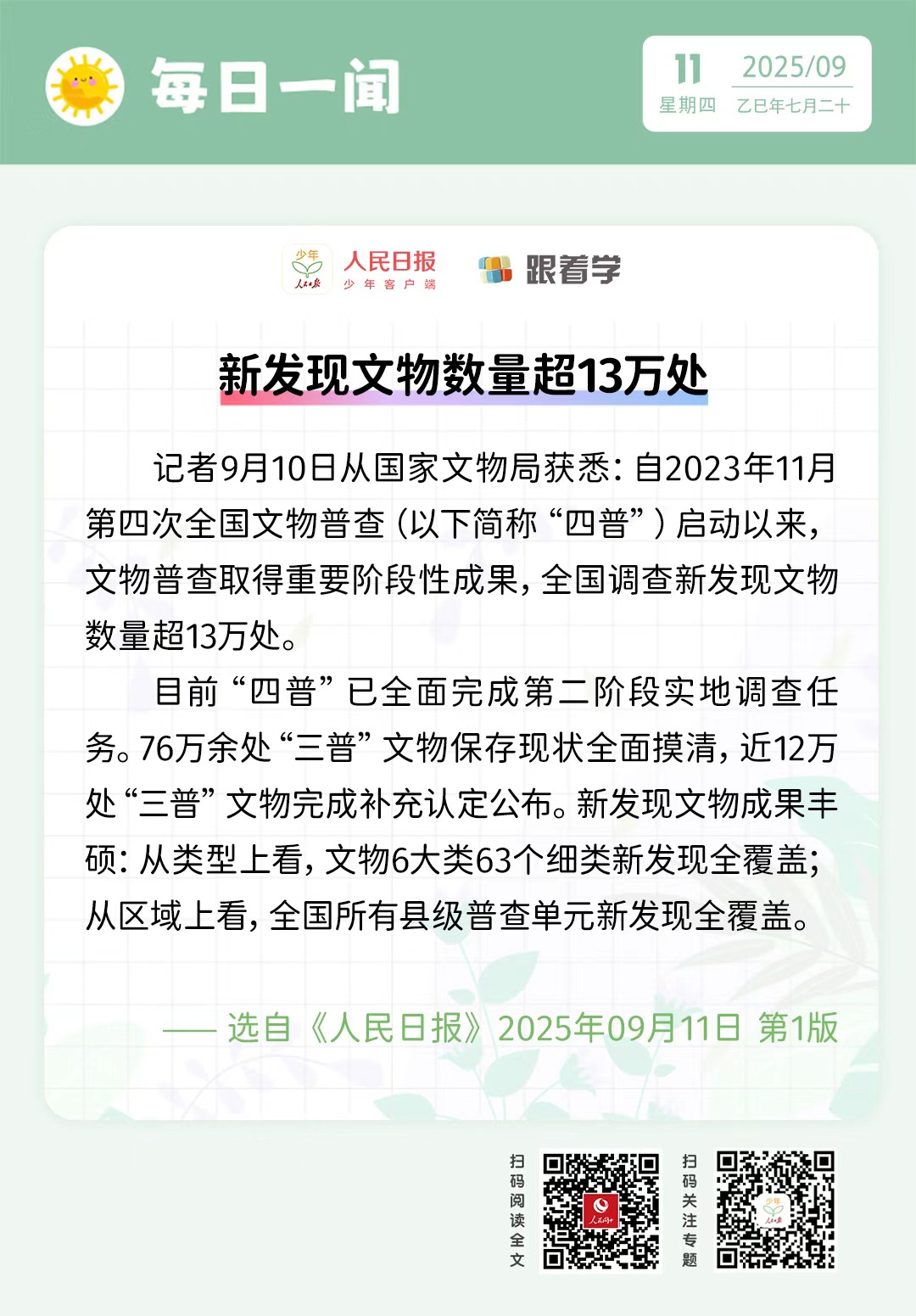 每日一聞丨新發現文物數量超13萬處