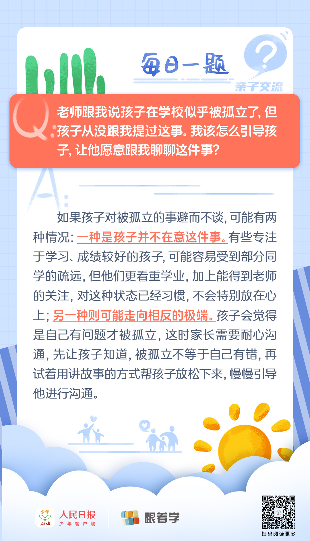 每日一題丨孩子在學校被孤立,我該怎么和孩子溝通?