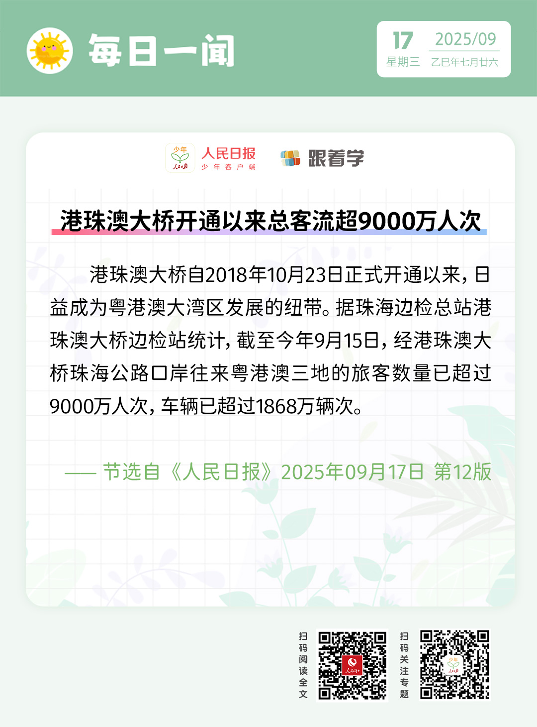 每日一聞丨港珠澳大橋開通以來總客流超9000萬人次
