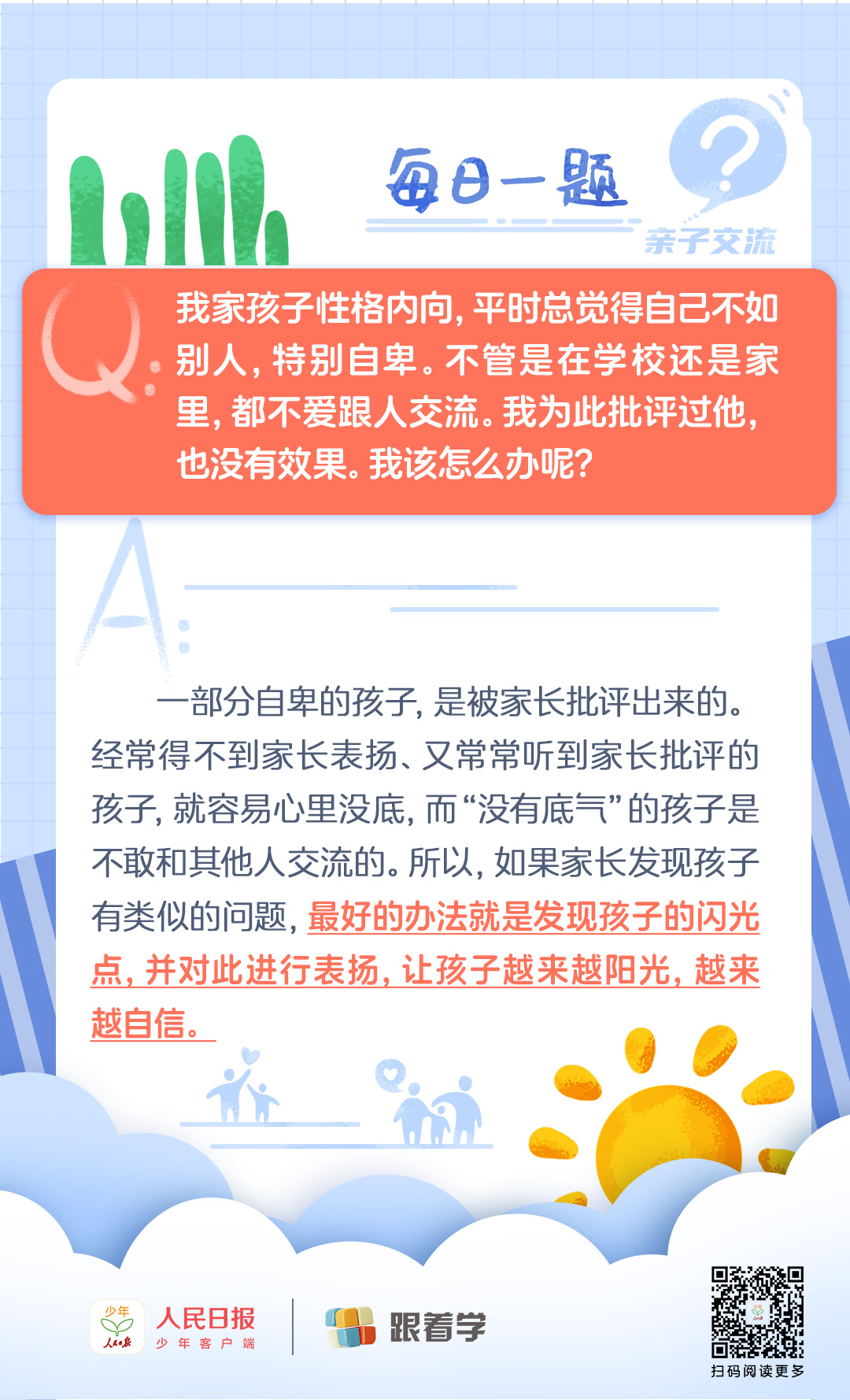 每日一題丨孩子內向自卑不愛跟人交流怎么辦?