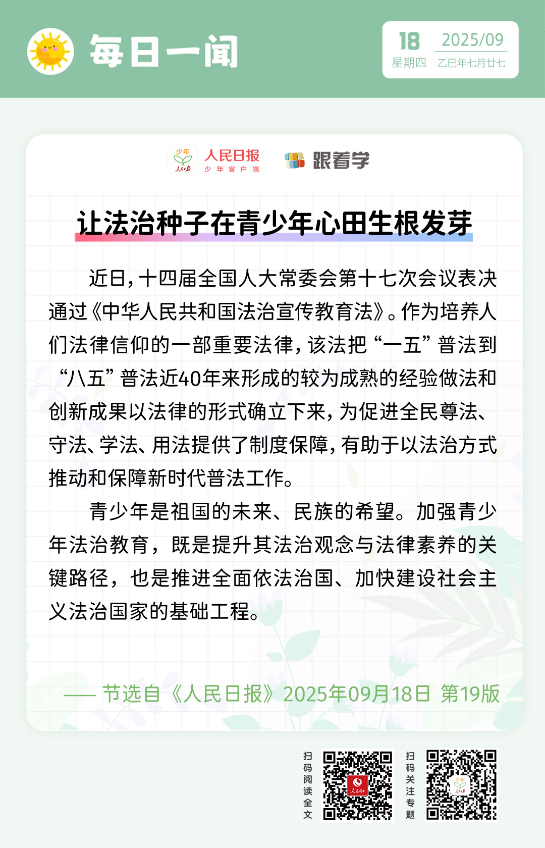 每日一聞丨讓法治種子在青少年心田生根發芽