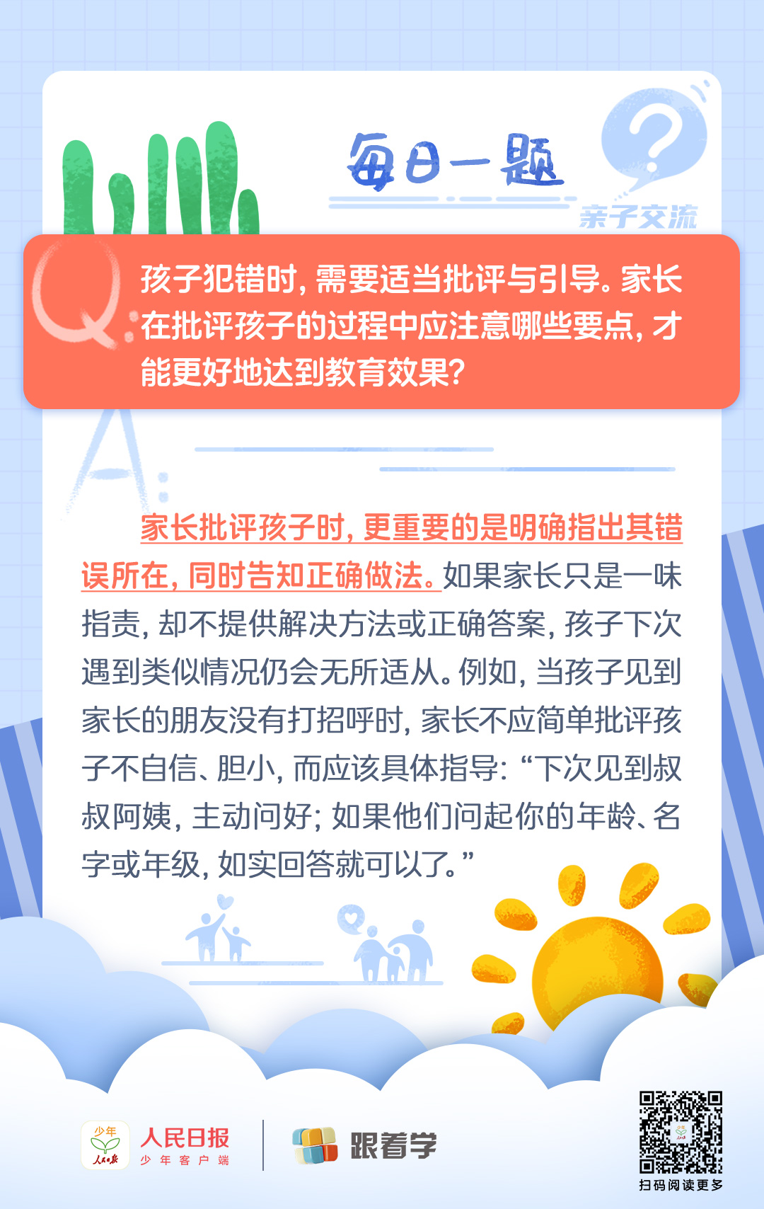 每日一題丨孩子做錯了事情,家長批評孩子需要注意什么?