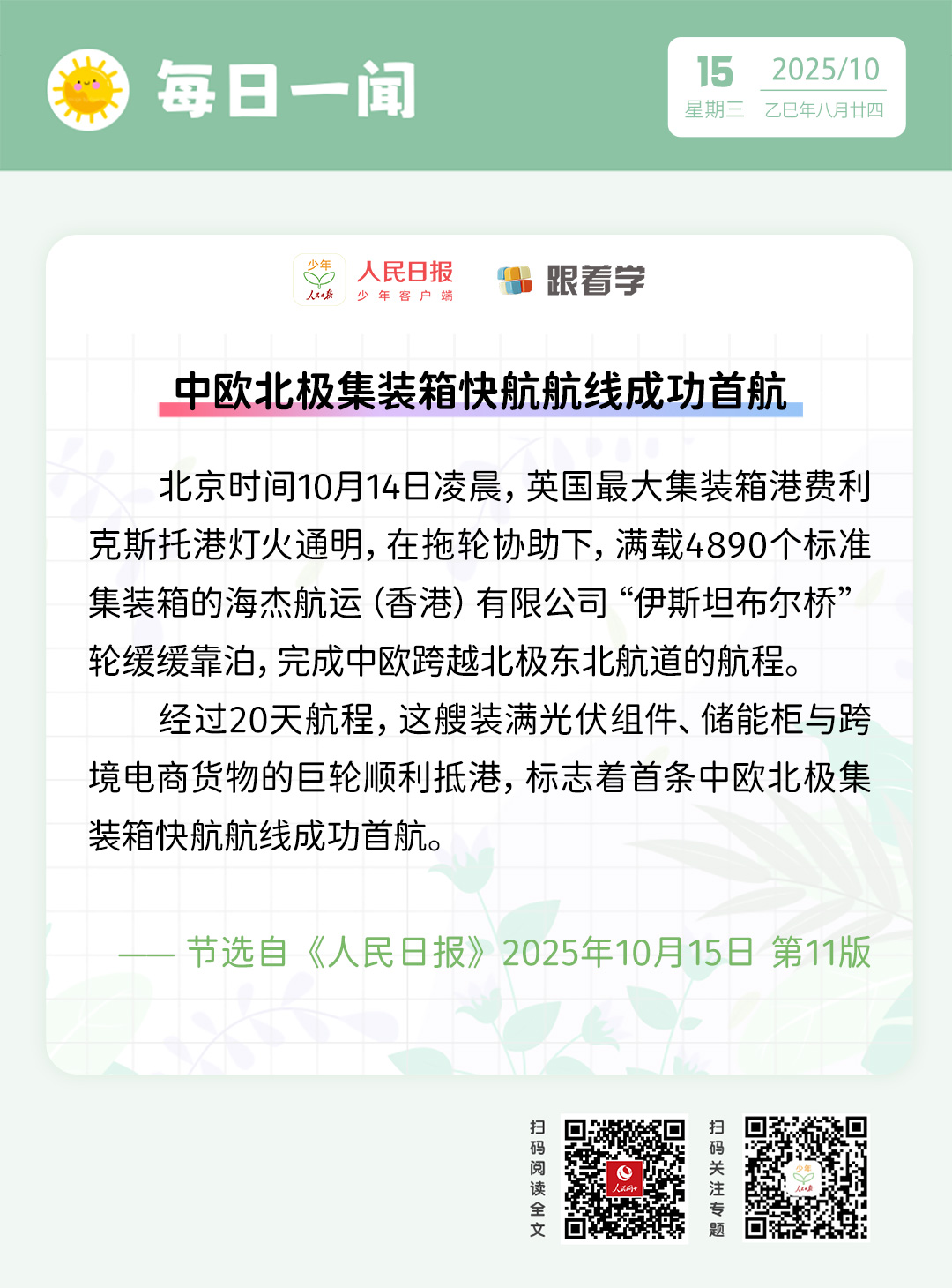 每日一聞 | 中歐北極集裝箱快航航線成功首航