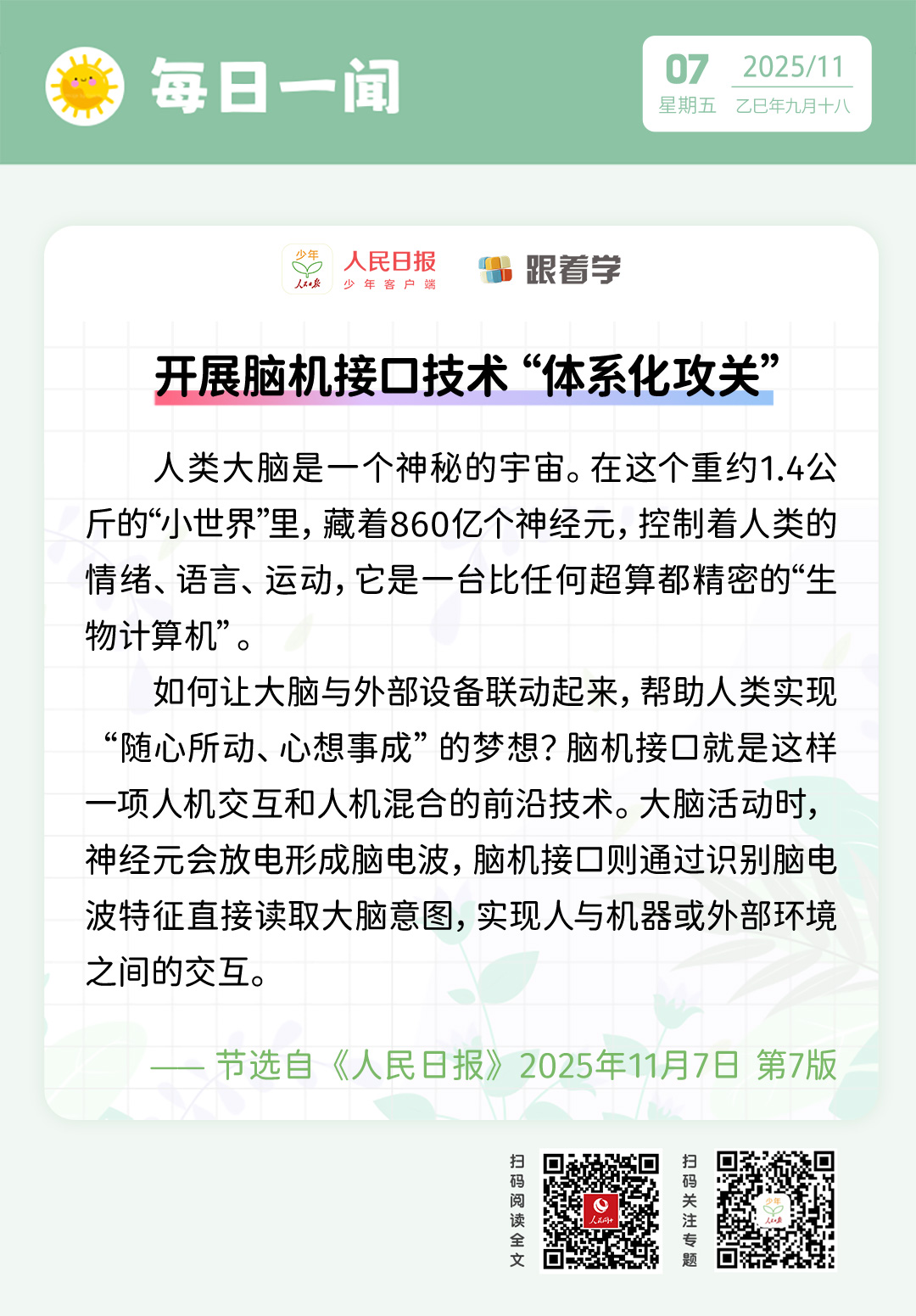 每日一聞丨開展腦機接口技術“體系化攻關”