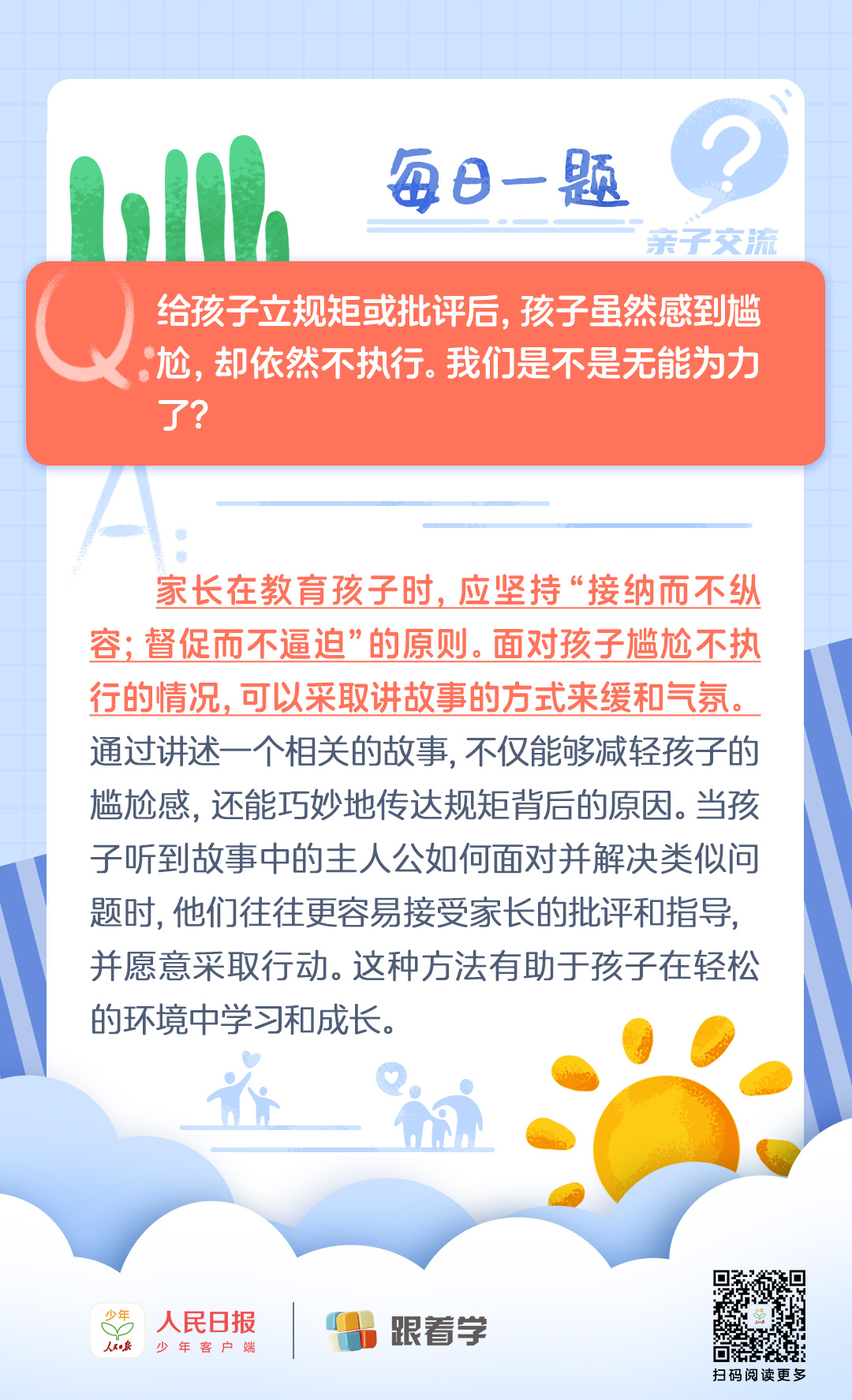 每日一題丨孩子做錯事被批評后雖感尷尬卻仍不守規怎么辦?